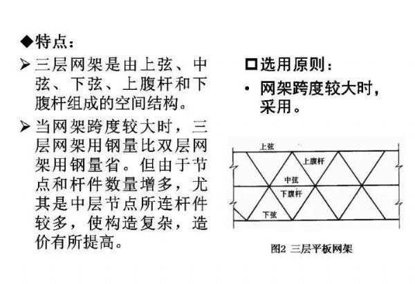 本文主要講述了網(wǎng)架結(jié)構(gòu)的形式、設(shè)計選型、支承體系以及網(wǎng)架的找坡方法,并進(jìn)行了常用網(wǎng)架設(shè)計軟件的比較,對空間鋼結(jié)構(gòu)尤其是網(wǎng)架網(wǎng)殼結(jié)構(gòu)感興趣的朋友不妨一讀。