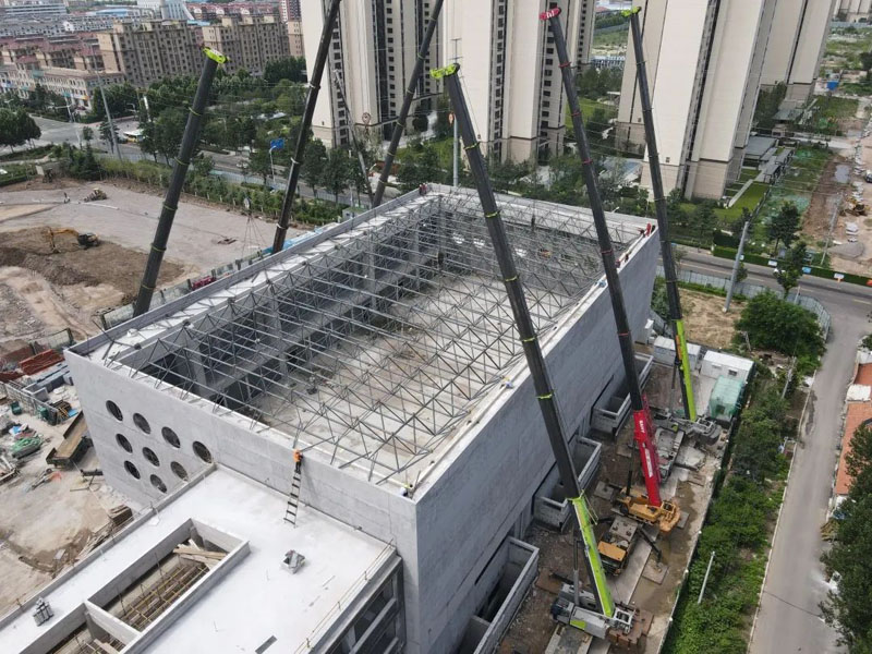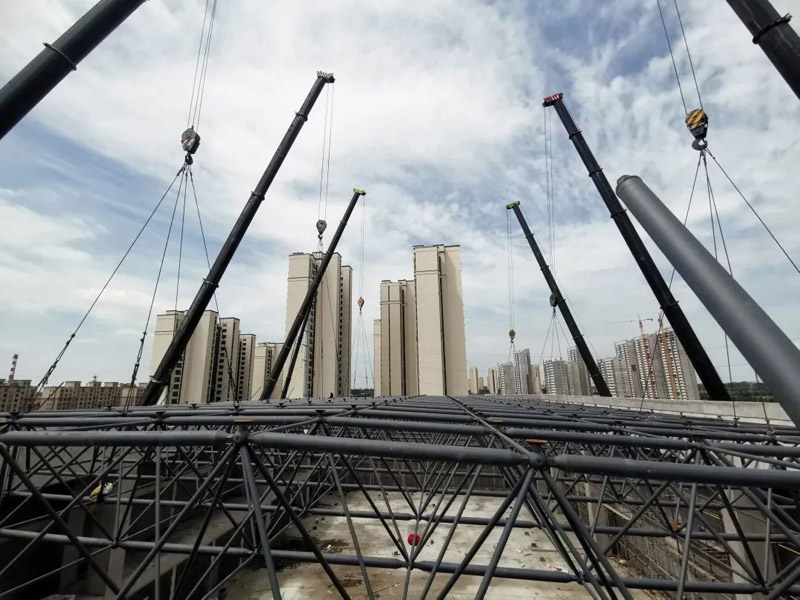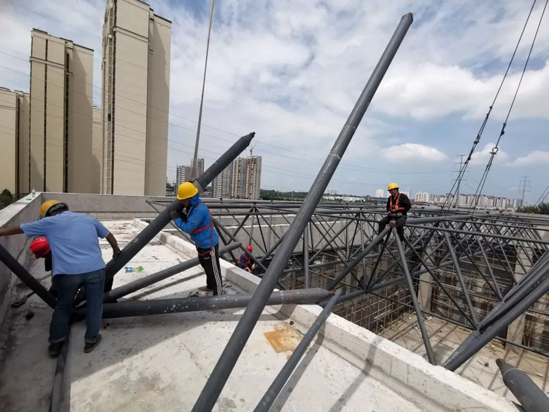 本工程為螺栓球節(jié)點正方四角錐網架,其材質選用GB699中的45號鋼。螺栓球直徑zui大為?250mm,zui小直徑?120mm。網殼桿件采用直縫或無縫焊接鋼管,材質為Q235-B,桿件zui小型號為?60*3.5,桿件zui大型號為?219*16。高強螺栓選用40Cr,對于M12-36的高強螺栓強度等級10.9S,對于M39-64的性能等級9.8S。支座底板、墊板選用Q355-B鋼。焊條型號Q235鋼之間E43系列;Q235鋼與鋼Q355之間E43系列。