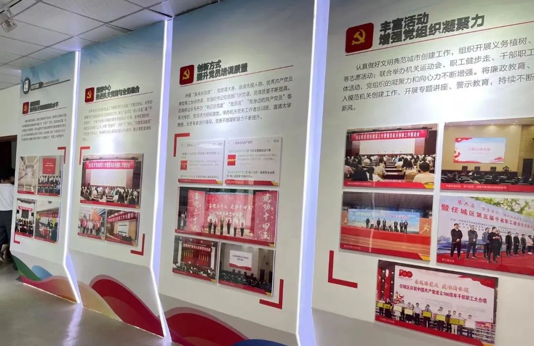 任城區(qū)黨史陳列館含走進(jìn)任城篇、古韻任城篇、紅色任城篇、富強(qiáng)任城篇、幸福任城篇、美麗任城篇及黨的十九大精神專題展覽等七大展廳。其中紅色任城篇和幸福任城篇以“站起來”“富起來”“強(qiáng)起來”“美起來”等多板塊介紹了中國共產(chǎn)黨領(lǐng)導(dǎo)人民在革命、建設(shè)和改革各個(gè)歷史時(shí)期所走過的光輝歷程,在社會(huì)主義現(xiàn)代化建設(shè)不同階段取得的一個(gè)又一個(gè)勝利。